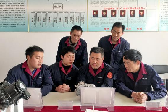 合肥公交集团保修公司查道勇技能大师工作室成功晋级“国家级技能大师工作室”。查道勇近日又获“全国交通技术能手”称号。这是查道勇与同伴研究技改。